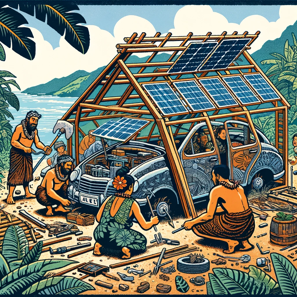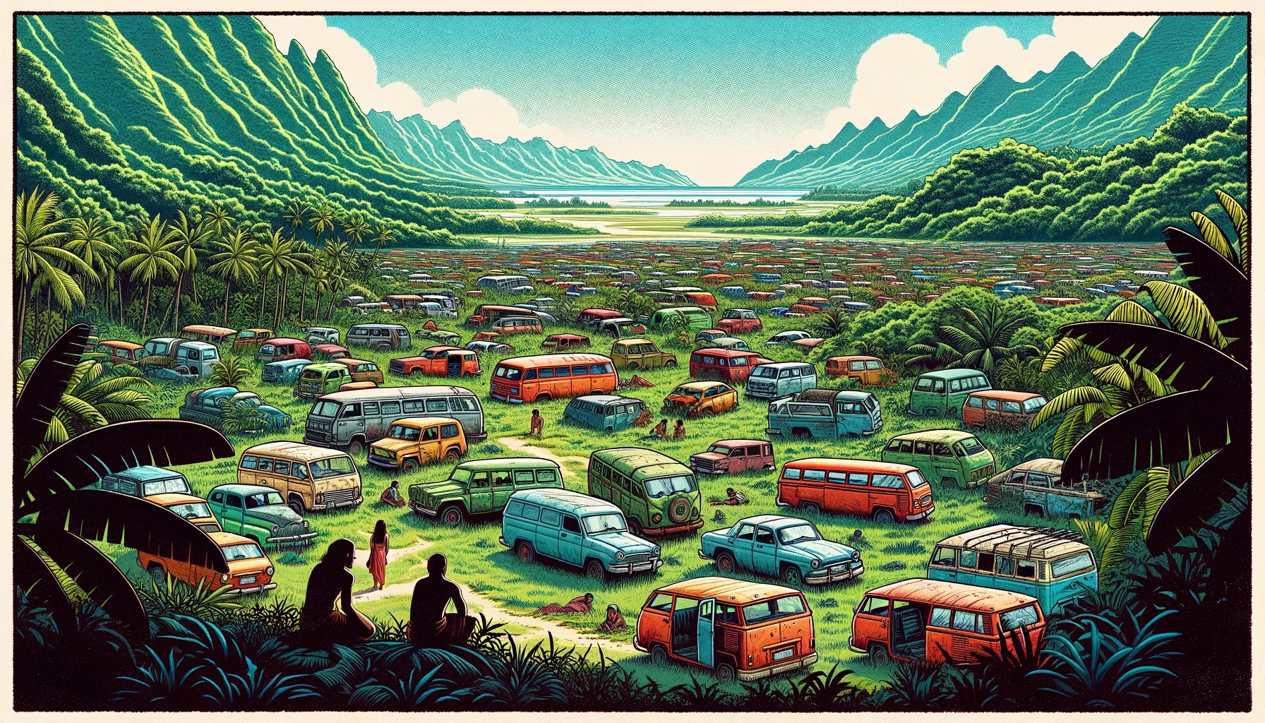 In 2025, a collective of local activists, engineers, and artists in Hawaii, inspired by the global solarpunk movement, launch Phoenix Autos. They envision a future where the islands' abandoned vehicles are not eyesores but assets. Local communities across Hawaii, facing the dual challenges of waste management and the need for sustainable development, embrace the idea.